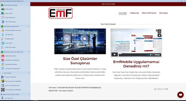 Telif Hakkı © 2020 EMF BİLGİSAYAR YAZILIM YÖNETİM VE DANIŞMANLIK HİZMETLERİ - Tüm Hakları Saklıdır.